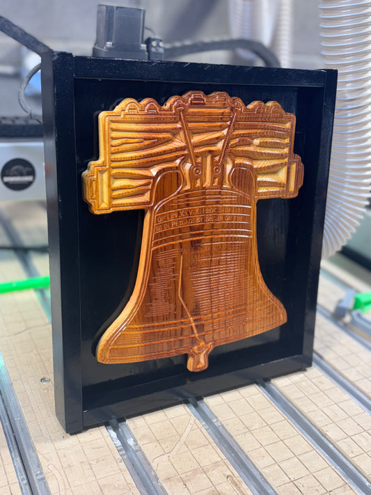 Framed Wooden Liberty Bell β Carved from 150-Year-Old Oak