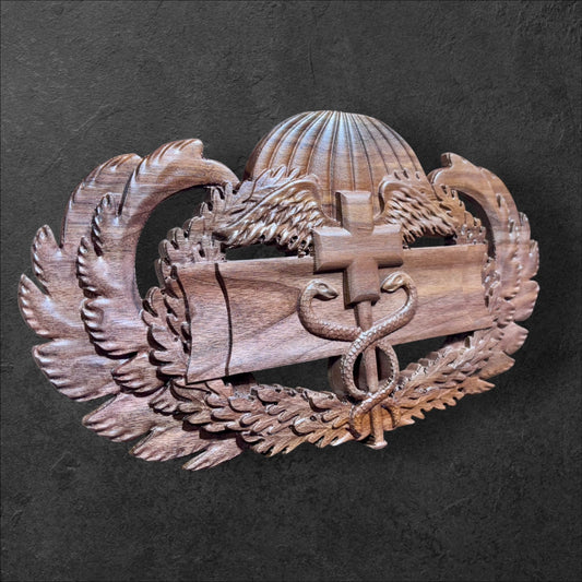 18β Walnut Airborne Expert Medical Badge β CNC Carved Military Wall Art