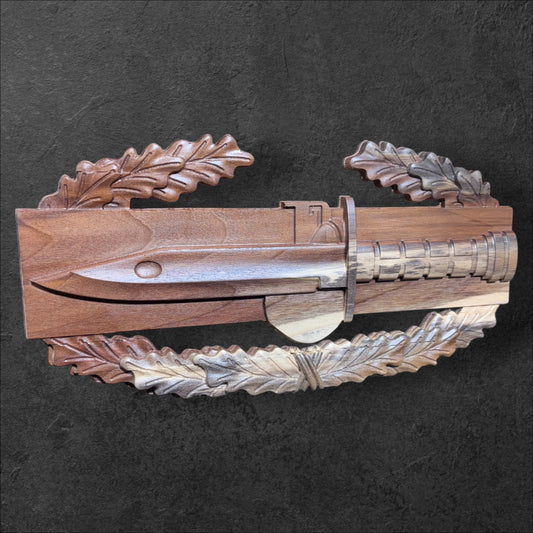 Walnut Combat Action Badge β CNC Carved 23β Hardwood Display