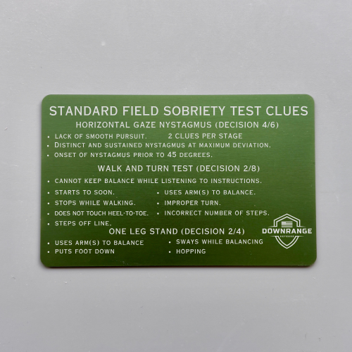 Stay prepared with our premium laser-engraved aluminum reference cards, designed for durability and convenience. These waterproof, double-sided cards are built to withstand the toughest conditions, making them an essential tool for law enforcement professionals.